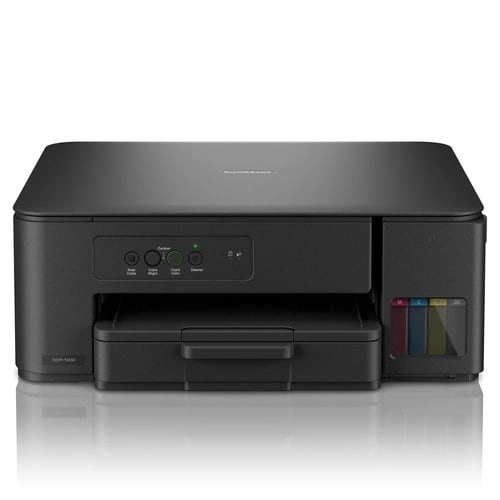 Optimiza tu espacio de trabajo con esta impresora compacta 3-en-1 que combina impresión, copiado y escaneo de alta calidad. El sistema InkBenefit Tank te permite imprimir más gastando menos, con botellas de tinta originales Brother de ultra alto rendimiento.